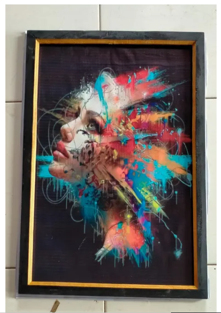 lukisan cetak wanita abstrak plus bingkai ukuran 65×45